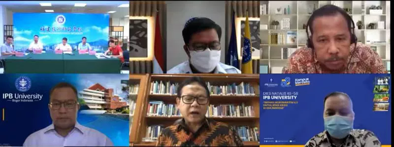 Attendees to the online conference were Rokhmin Dahuri, former minister of Marine Fisheries Ministry of Indonesia, chairman of the Marine Fisheries Committee of Indonesian Democratic Party of Struggle, and professor of the Fisheries and Marine Sciences School of IPB, Arif Satria, president of IPB, Dodik Ridho, vice-president of IPB, Iskandar Siregar, director of IPB International Program, Chen Zhiyong, vice-president of FPNU, as well as representatives from the Office of International Cooperation and Exchange of FPNU, Science and Research Administration Department of FPNU and the China-Indonesia Sea Food Research and Development Center.