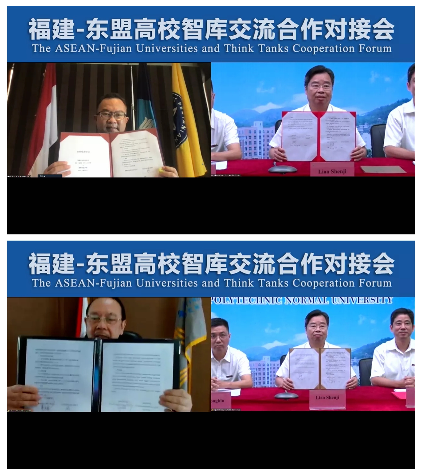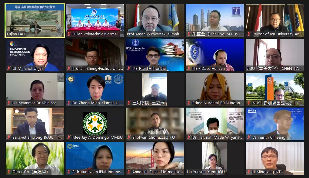 On the afternoon of September 28th, as the establishment of China-ASEAN dialogue relations drew to its 30th anniversary, Fujian Provincial Foreign Affairs Office and Fujian Provincial Department of Education jointly hosted the ASEAN- Fujian Universities and Think Tanks Cooperation Forum via online video. President Liao Shenji was invited to attend the Forum and signed the Inter-university cooperation framework agreement with Bogor Agricultural University and IPMI International Business School respectively on behalf of FPNU.