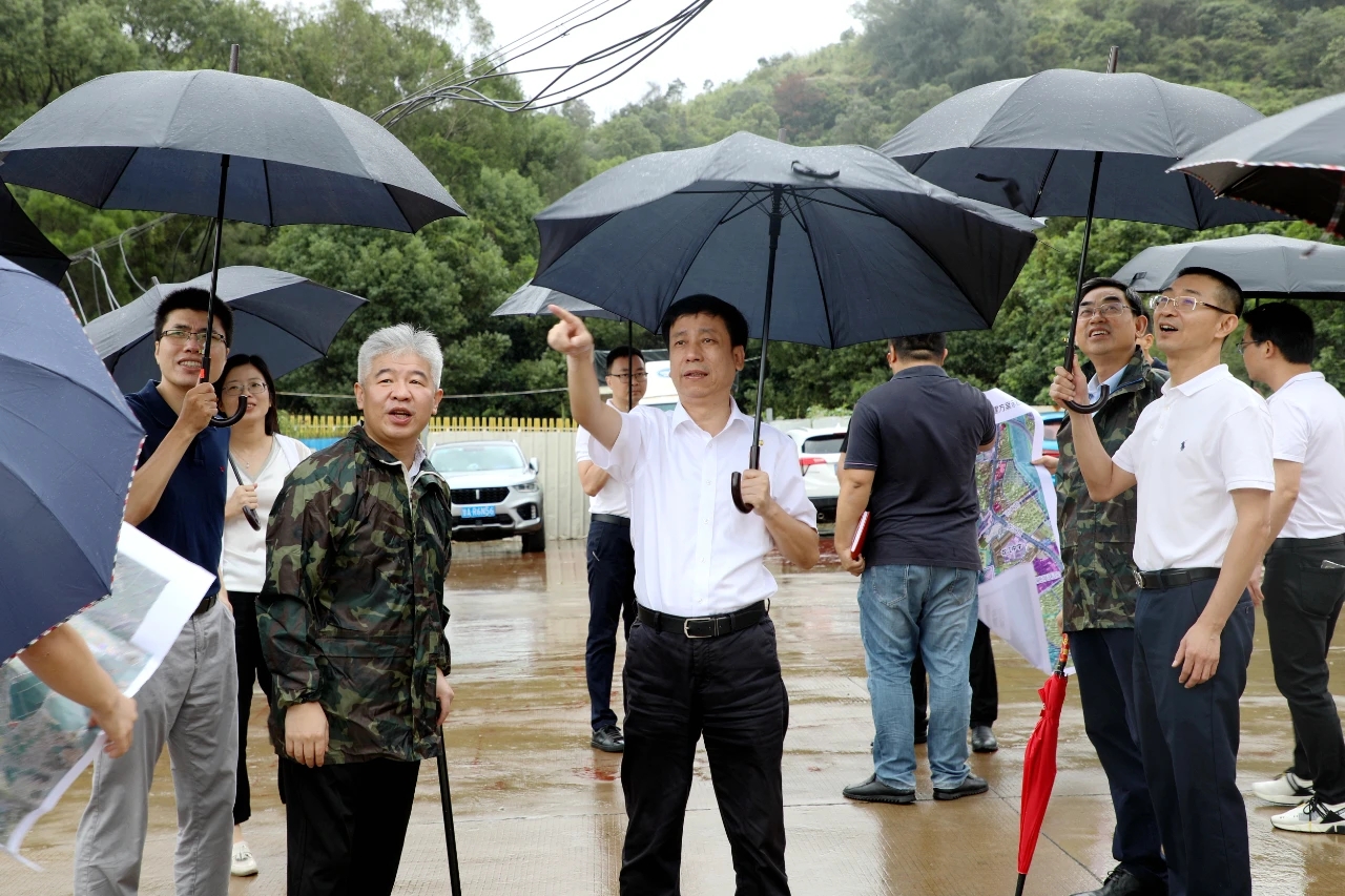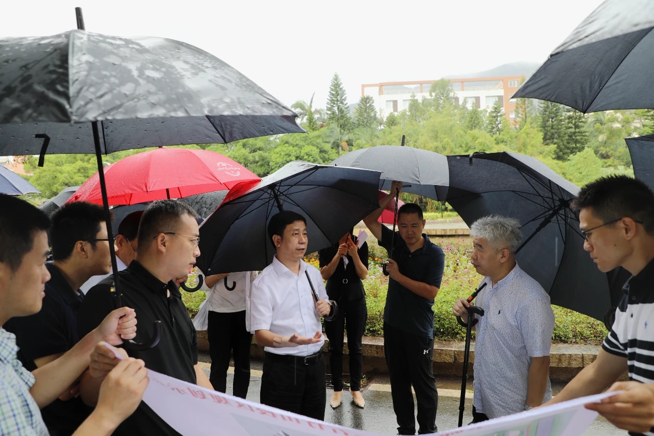 Accompanied by Secretary Lai Hairong, the visiting delegation led by Acting Mayor Wu Yongzhong did a field research on the reserve land in the south of Wumashan Campus, Shizhushan Campus and the proposed land of Yuanhong Campus.