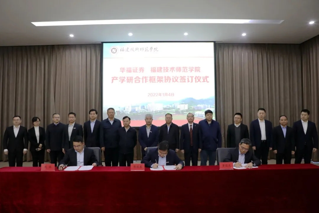 Entrusted by Secretary of the Party Committee and Chairman of Huafu Securities Co., Ltd Huang Jinlin, Chief Executive of Huafu Securities Huang Deliang, General Secretary of Xingyin Philanthropic Foundation Zhou Ji and President of FPNU Liao Shenji jointly signed the school-enterprise IUR cooperation framework agreement. According to the agreement, Huafu Securities will donate no more than 1 million yuan per year to FPNU through Xingyin Philanthropic Foundation for three consecutive years to support school-enterprise cooperation.