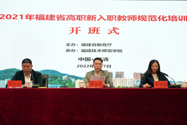 On April 7, FPNU held the online opening ceremony of 2021 Fujian Provincial Standardized Training for Novice Vocational Teachers. This is the first national vocational teacher training project that FPNU has undertaken. Professor Chen Zhiyong, Director of Fujian Vocational Teacher Training Center and Vice President of FPNU, delivered a speech at the opening ceremony. A total of 100 new teachers from 49 vocational colleges and universities in Fujian province, as well as the heads of the School of Continuing Education and the School of Education of FPNU, attended the ceremony.
