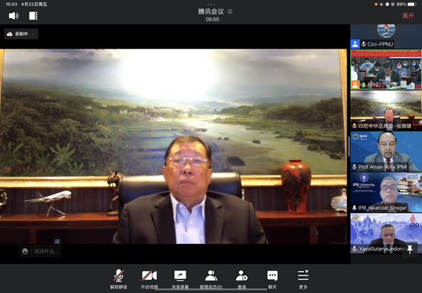 Zhang Jinxiong, President of the Indonesian Chinese Chamber of Commerce, praised FPNU's achievements in recent years in giving full play to the ties with Overseas Chinese and focusing on Indonesia to carry out educational, technological and cultural exchanges and cooperation. He said that amity between people holds the key to the sound relations between states, and the young are the future of the world. He expects the universities of the two countries to build a platform to promote the mutual learning and sharing of young students, so as to apply what they have learned and build a better future together. He said that the Indonesian Chinese Chamber of Commerce will continue to support the cooperation and exchanges between the universities of the two countries, and jointly promote the "Belt and Road" construction and the implementation of the "Two countries, Twin Parks " project with FPNU.