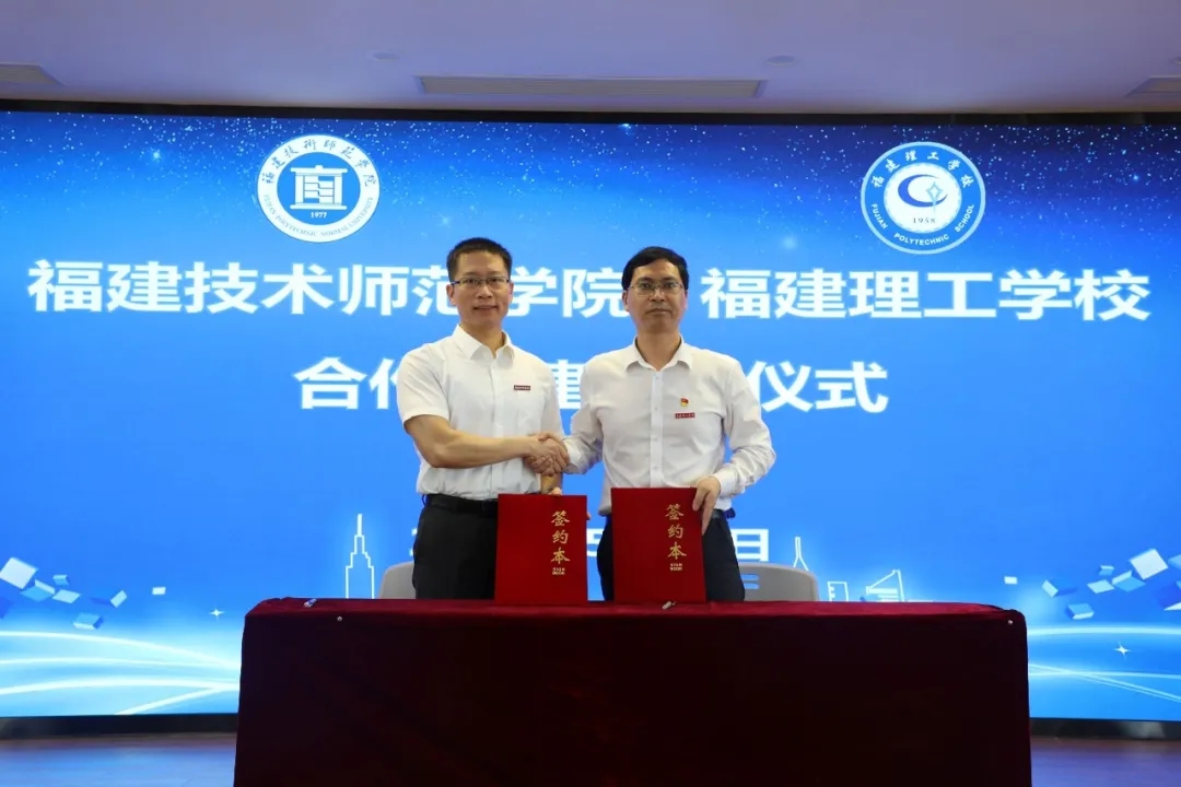 Chen Zhiyong, Vice President of FPNU, and Jiang Guofen, President of Fujian Polytechnic School, signed the base school agreement on behalf of both sides respectively.