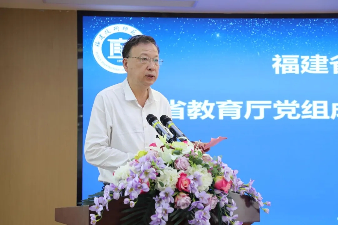 Liao Shenji, President of FPNU and Chairman of Fujian Vocational Education Teacher Development League, delivered a speech. He said that with the strong support of Provincial Department of Education, FPNU is vigorously promoting the construction of the Provincial Vocational Teacher Training Center, the Provincial Vocational Teacher Development League, affiliated schools, base schools, and cooperative schools, striving to promote the establishment of a vocational education development system of talents cultivation, teachers training and resources sharing, so as to help the high-quality development of Fujian Vocational Education. He pointed out that FPNU will fully support the development of the base school, and try to build a "Fujian model" of modern education system with Chinese characteristics. He hoped that the base school would seize the opportunity to play a leading role in the reform and development of secondary vocational education in Fujian Province and make new and greater contribution to the economic and social development of Fujian.