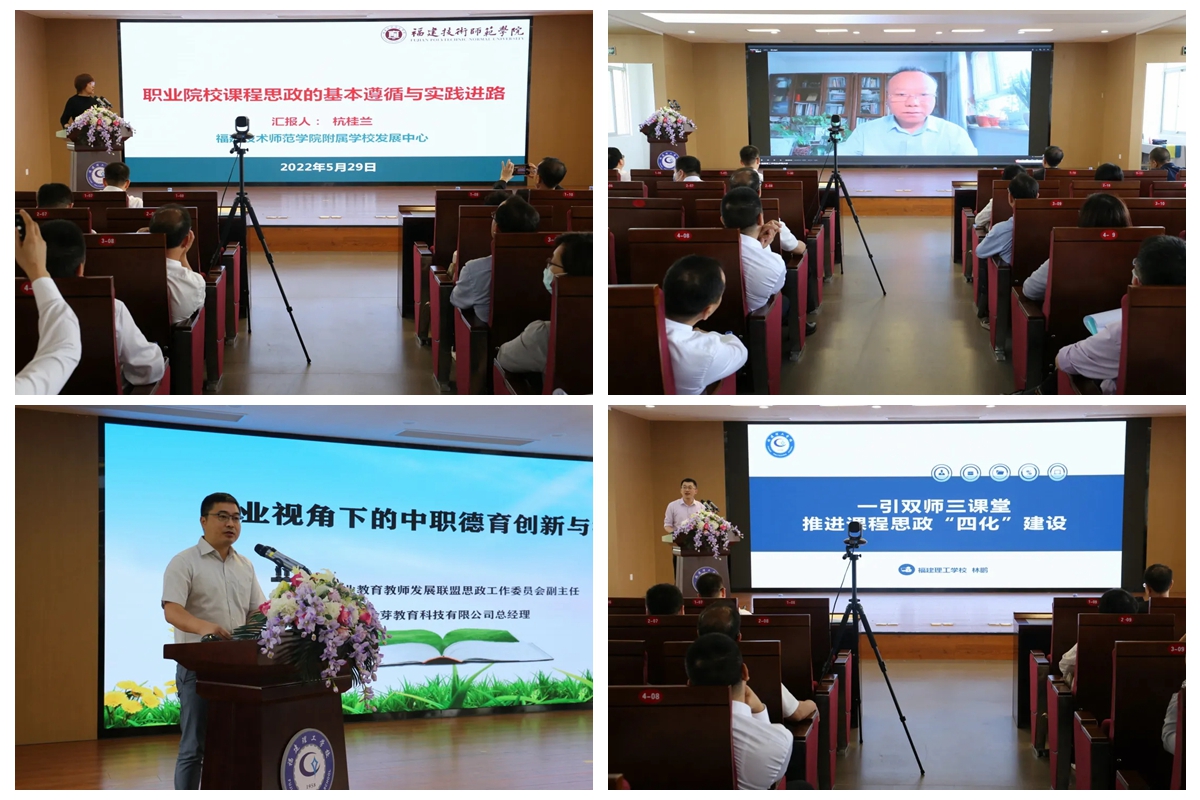 On May 29, the signing and unveiling ceremony of the First Secondary Vocational Base School for FPNU, and the academic forum of the Ideological Work Committee of Fujian Vocational Education Teacher Development League were held in Fujian Polytechnic School. Attendees included Liu Jian, member of the Education Working Committee of the CPC Fujian Provincial Committee, member of the Party leadership group and Deputy Director of the Education Department of Fujian Province, Liao Shenji, President of FPNU, Chen Zhiyong, Vice President of FPNU, Lin Suchuan, Director of the Vocational Education and Adult Education Division of the Provincial Education Department, Gongsen, Director of the Provincial Vocational Education Center, and Jiang Guofen, Secretary of the Party Committee and President of Fujian Polytechnic School. The meeting was held online and offline. Representatives of vocational education research experts, leaders of some higher vocational colleges in Fujian, representatives of member units of the Provincial Vocational Education Teacher Development League and enterprise representatives participated in relevant activities.