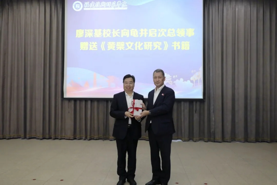 Principal Liao Shenji presented Huangbo Culture Studies edited and published by Research Institute for Hunagbo Culture and Maritime Silk Road, as a gift to Kamei Keij, the Japanese Consul-General to Guangzhou.