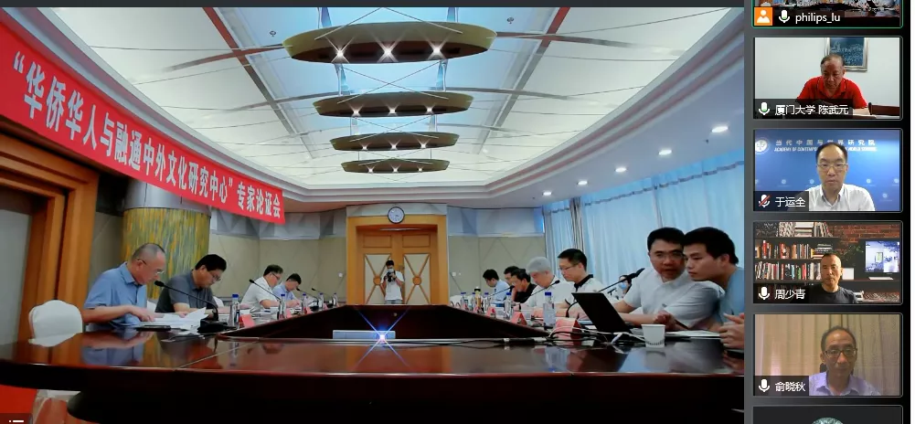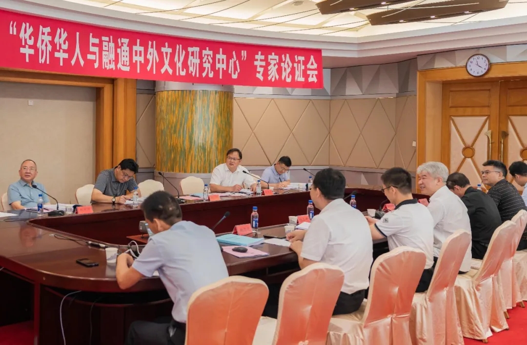 On July 8th, FPNU held an expert meeting on constructing “Research Center of Overseas and Ethnic Chinese and Sino-Foreign Cultural Integration (hereinafter referred to as Research Center)”. Experts from inside and outside Fujian Province attended the meeting online and offline respectively, including Researcher Yu Yunquan of China International Communications Group, Researcher Zhou Shaoqing from Chinese Academy of Social Sciences, Researcher Yu Xiaoqiu of Institute of Party History and Literature, Professor Chen Wuyuan of Xiamen University, Professor Zeng Ling of Xiamen University, Professor Xue Xiujun of Huaqiao University, Professor Sun Jiandang of Fujian Normal University, and Professor Chen Qiuhua of Fujian Agriculture and Forestry University. Professor Zhang Huarong, Dean of Concord University College, Fujian Normal University, served as the leader of the expert panel. Professor Chen Zhiyong, Vice President of FPNU and Executive Deputy Director of Research Center, presided at the meeting. Professor Lai Hairong, Secretary of FPNU Party Committee and Director of Research Center, delivered a speech in the meeting.