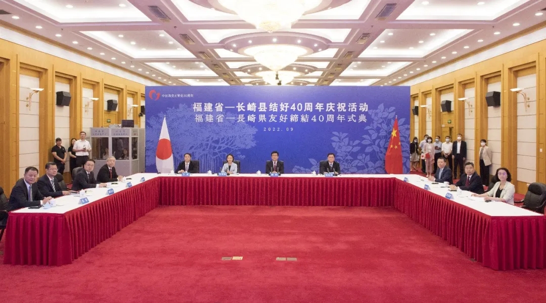 September 29, 2022 marks the 40th Anniversary of Fujian-Nagasaki Friendship. The celebration was held in the Fujian Provincial Government, which Fujian Governor Zhao Long, Nagasaki Governor Kengo Oishi and Speaker Hiroyoshi Nakashima attended via video link. Chinese Ambassador to Japan Kong Xuanyou and Japanese Ambassador to China Hideo Tarumi delivered a video address. In addition, FPNU President Liao Shenji signed Memorandum of Cooperation with Yukio Ando, President of Nagasaki International University.