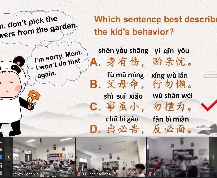 To carry forward the traditional Chinese culture and cultivate students' interest in learning Chinese culture, the series of lectures was given to all primary school students of Jakarta Nanyang School, first introducing the chapters of Chinese classic Dizi Gui.