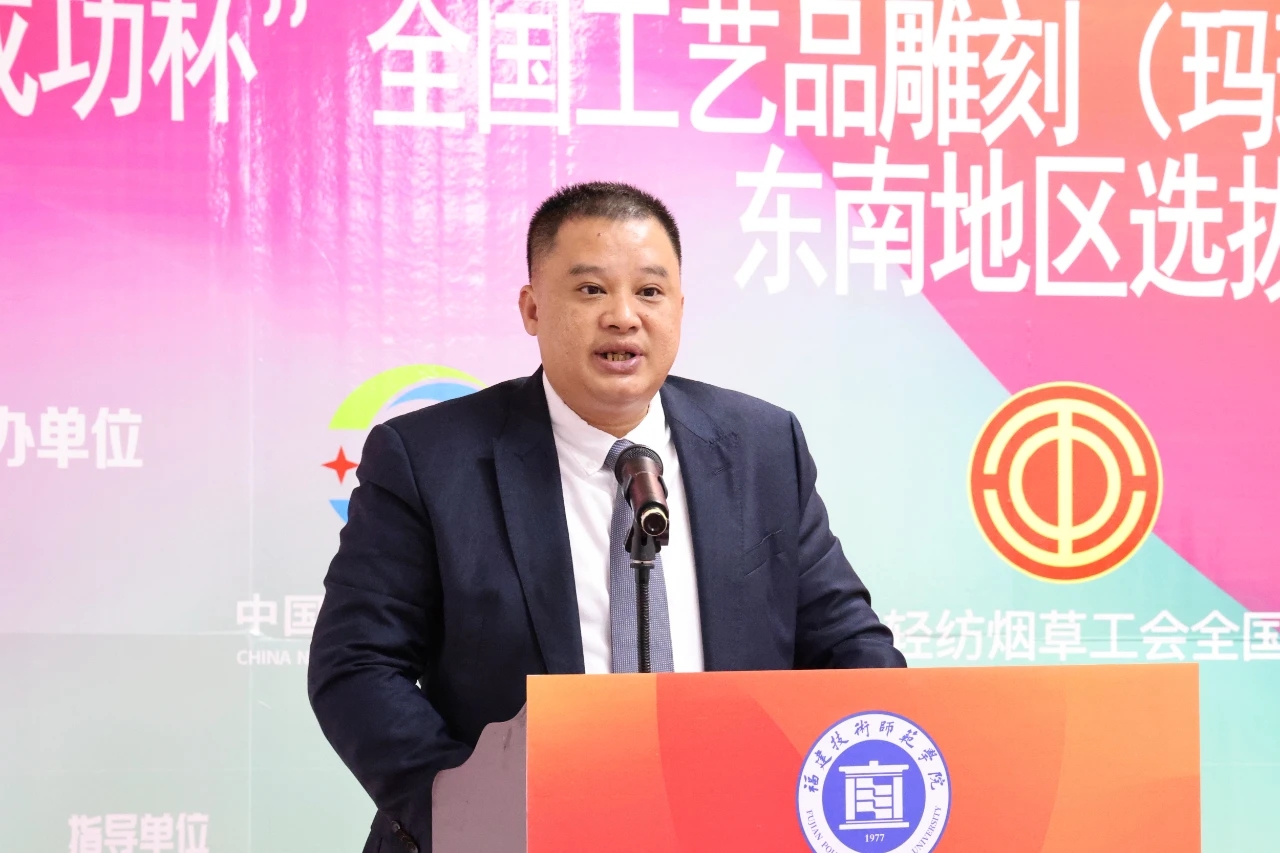 On November 25th, the 2022 "Success Cup" Southeast Region Trial of the National Light Industry Vocational Skills Competition of Crafts Carving (Agate Jade) was successfully opened in FPNU. President Liao Shenji attended the opening ceremony and delivered a speech.