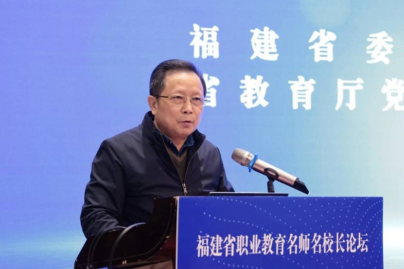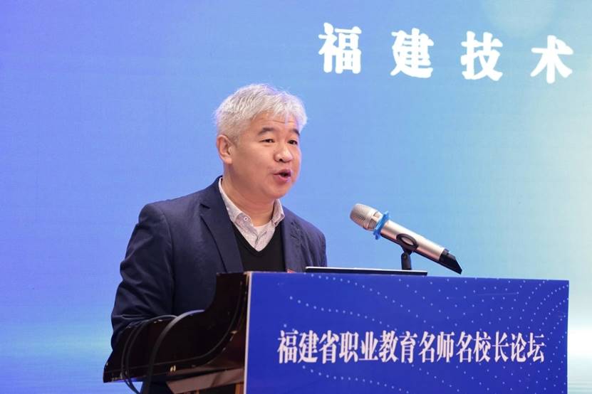 On December 2nd, the First Forum for Famous Teachers and Principals of Vocational Education in Fujian was successfully held in Fuqing, sponsored by Fujian Provincial Department of Education and undertaken by FPNU and Provincial Vocational Education Teacher Training Center. Presidents and principals from 50 secondary and higher vocational colleges attended the forum. It was held online and offline, attracting a total of 15,000 online viewers.