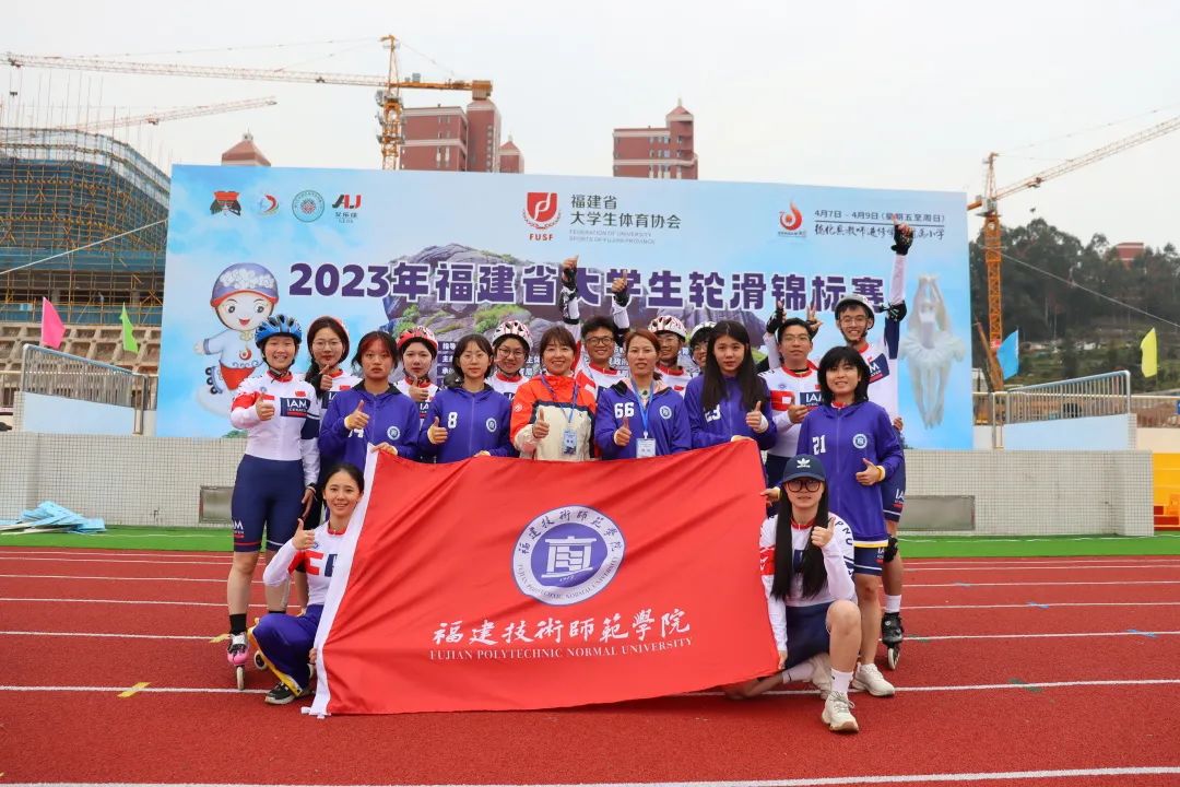 On April 9th, the first Fujian Provincial Roller Skating Championship for College Students, hosted by the Fujian Province College Student Sports Association, concluded perfectly in Dehua, the world capital of ceramics. The team of FPNU performed well in the competition, winning the second place in the group total score of Division B and the seventh place in the group total score of Division A. Moreover, it earned a total of five gold medals, three silver medals, and four bronze medals, as well as three fourth places, one sixth place, three seventh places, and one eighth place. The team was led by Li Fengcheng, Vice Dean of School of Physical Education, and coached by Guan Chentao, professor of School of Physical Education and instructor of FPNU Roller Skating Association.