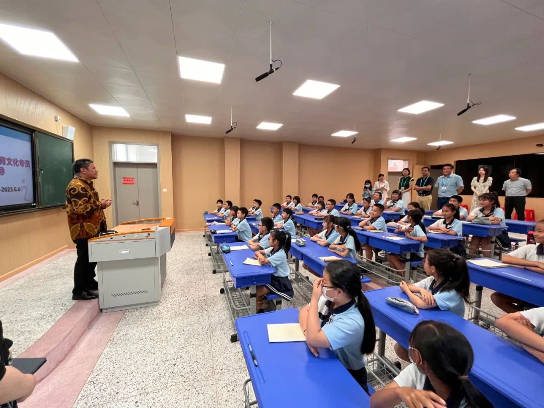 In the afternoon of the same day, Attache Li Jian and his delegation went to Yuanzai Primary School in Fuqing City to see the second class teaching of Indonesian language conducted under the guidance of FPNU, and had a cordial interaction with FPNU Indonesian language teachers and teachers and students of Yuanzai Primary School.