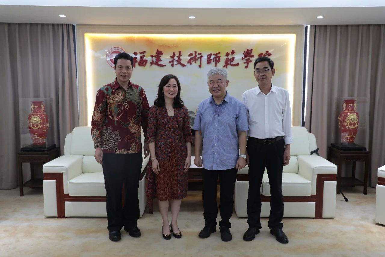 On the afternoon of September 6th , Christina Lim, daughter of Dr. Lim Hariyanto Wijaya Sarwono and Executive Director of Bhumitama Argiculture Co., LTD, her husband Zhu Zhaochang, and Wang Chaosheng, Vice Chairman of Jakarta Fuqing Labor Union were invited to visit FPNU. Lai Hairong, Secretary of FPNU Party Committee, and Principal Wu Keshou warmly received Director Christina Lim and her delegation. Shang Guangmei and Jiang Xingshan, Vice Presidents of FPNU, The United Front Work Office of the CPC FPNU Committee, heard of FPNU Alumni Association, the head and teacher representatives from the School of Qiaoxing Economics and Management, and representatives of Indonesia students participated the activity.